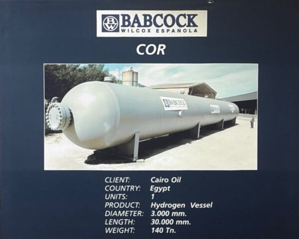 In 1999 UIT was awarded with Babcock Wilcox Espanola & CORC Hydrogen vessel weight 140 tn.